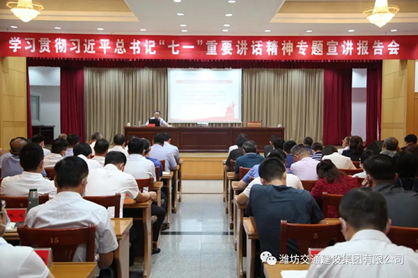 9月3日上午,濰坊交通建設(shè)集團(tuán)有限公司舉辦了學(xué)習(xí)貫徹習(xí)近平總書記“七一”重要講話精神專題宣講報告會,邀請了市學(xué)習(xí)貫徹習(xí)近平總書記“七一”重要講話精神宣講團(tuán)成員、市檔案館館長張志霄同志作宣講報告。集團(tuán)公司黨委書記、董事長劉文東同志帶領(lǐng)集團(tuán)公司機(jī)關(guān)……......